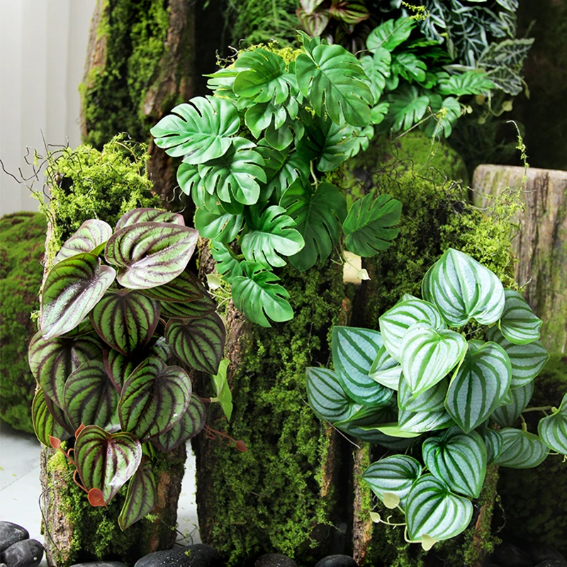 25-85cm Fake Monstera Rattan Artificial Plants Vines Wall Hanging Tree Branch Plastic Palm Leaves For Home Garden Shop DIY Decor