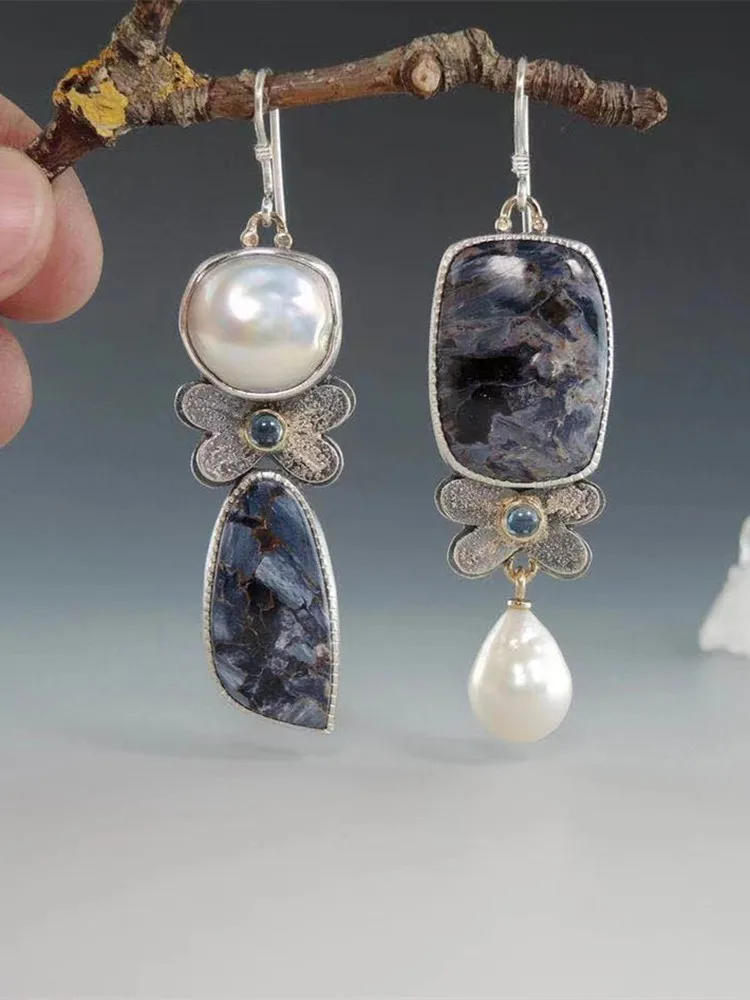 Blue Opal Butterfly Pearl Earrings