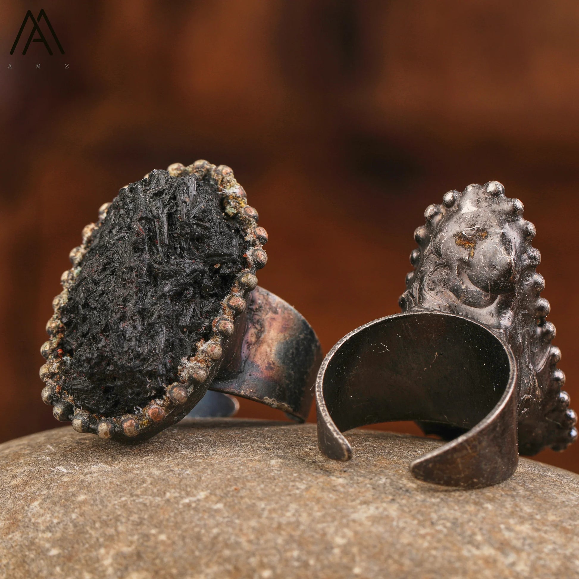 Raw Black Tourmaline Antique Copper Rings